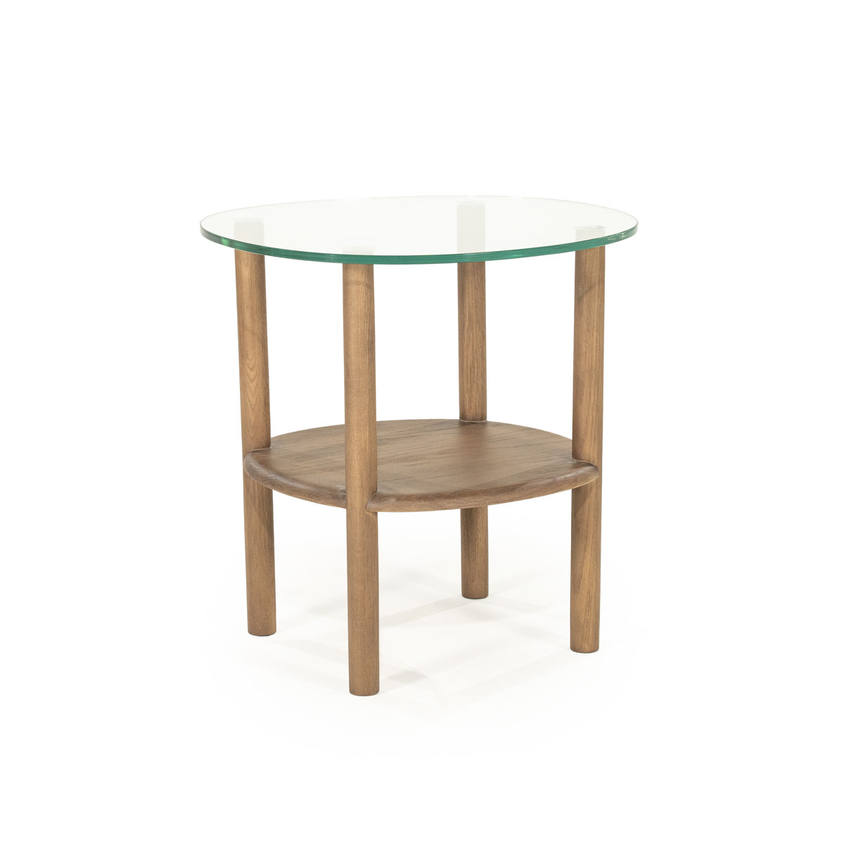 Organischer Beistelltisch Cleo Glas und Eichenholz Hellbraun 50×45 cm