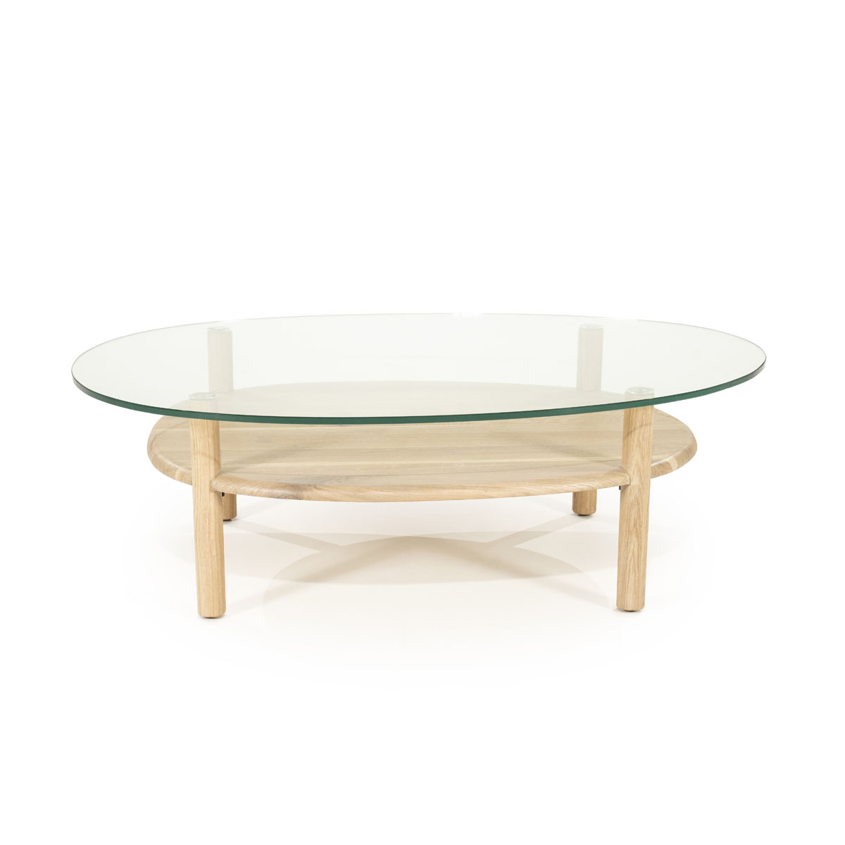 Organischer Couchtisch Cleo Glas und Eiche Natur 101×73 cm