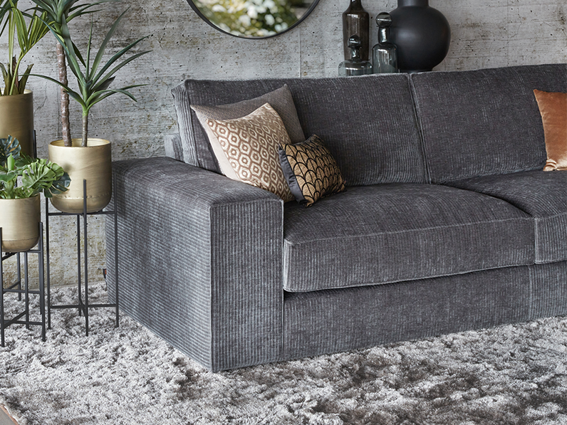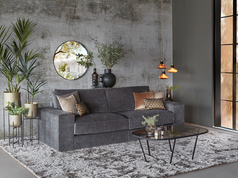 Noelle ist ein Sofa mit einer robusten Konstruktion und einem fantastischen Sitzkomfort dank der gut gepolsterten Sitze. Die Kombination aus hohen Beinen, dicken Sitzkissen und Nähten verleiht dem Sofa ein robustes Aussehen. Diese groben Nähte betonen die straffen Linien des Sofas, während die weichen Kissen das Gegenteil zeigen. Ein einzigartiger Kontrast in einem Sofa.