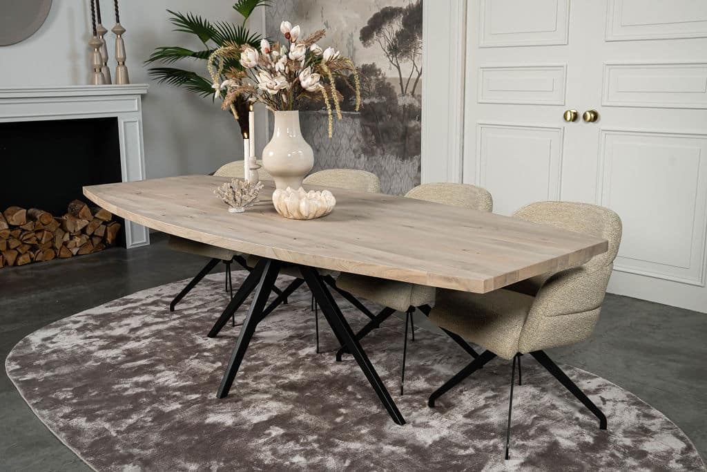Bringen Sie Stil und Atmosphäre in Ihr Esszimmer mit dem Halbovalen Eichholzesstisch Nice – die perfekte Kombination aus Design, Qualität und Komfort.