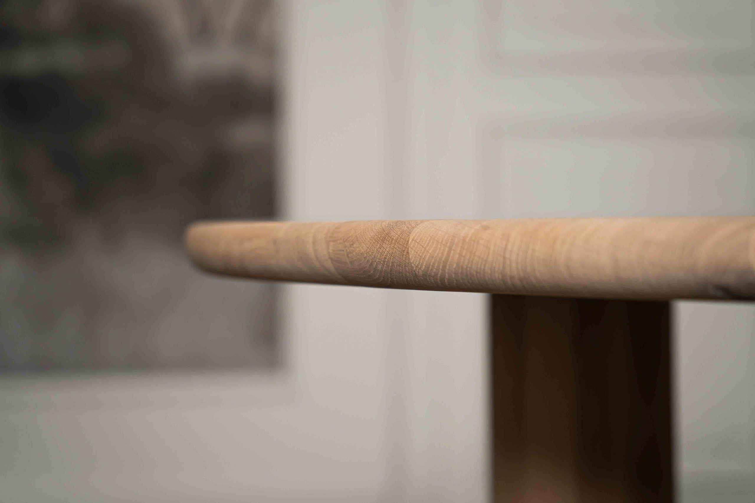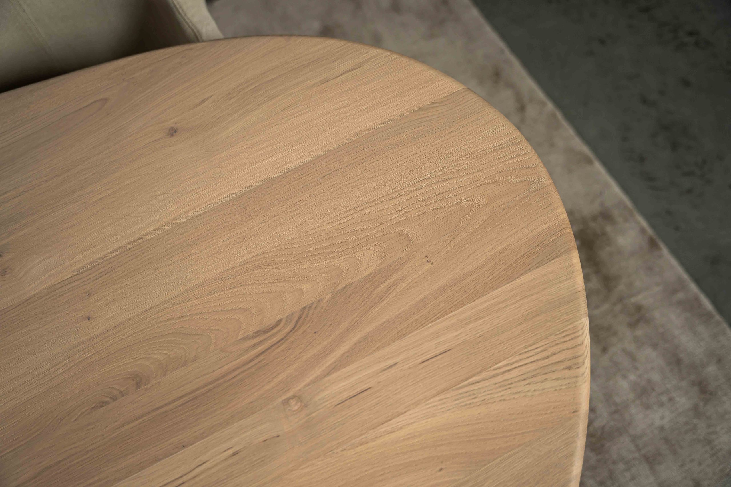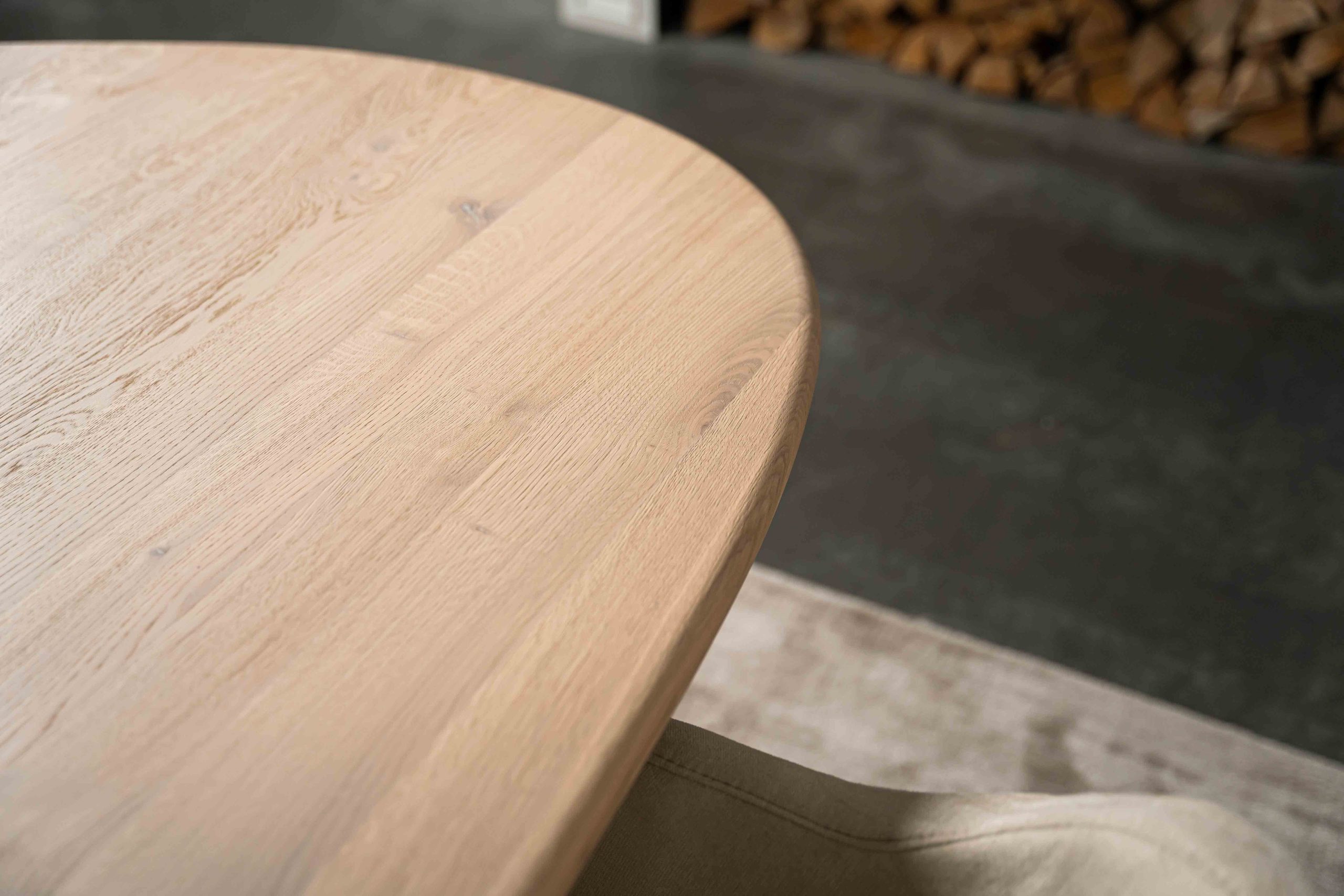Die weichen, abgerundeten Linien schaffen eine einladende Atmosphäre und machen den Tisch zu einem Blickfang sowohl in modernen als auch in klassischen Interieurs. Das Eichenholz ist sorgfältig mit einem natürlichen Lack behandelt, der die warme Holzmaserung hervorhebt und Schutz vor dem täglichen Gebrauch bietet.
