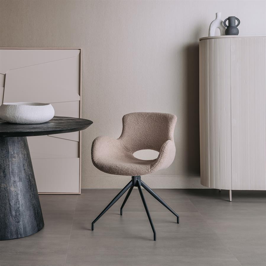 Der Campo Esszimmerstuhl ist aus der Möbelkollektion von Tower Living. Der Esszimmerstuhl verdankt sein schickes und luxuriöses Aussehen der Teddy Polsterung in Kombination mit dem eleganten Design der schwarzen Beine.